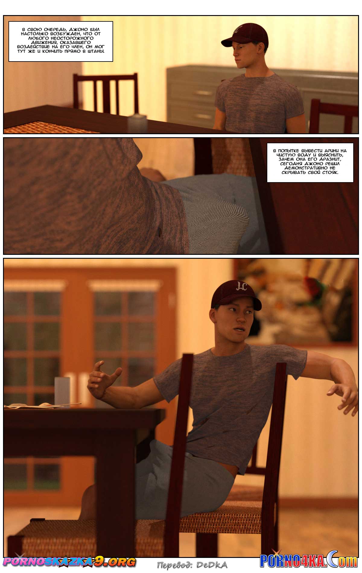 Возбужденная от всего того, что произошло днем, Арини с нетерпением ждала возвращения мужа с работы, чтобы заняться с ним сексом. Но муж не оправдал её ожиданий. Он вернулся домой поздно, поужинал, и уснул на диване. Арини долго ждала в спальне, что он проснётся и придёт к ней, но так и не дождалась. Зато утром, когда муж уехал на работу, Арини дождалась того, чего она ждала ещё больше чем секса с мужем. Она дождалась прихода Джоно…